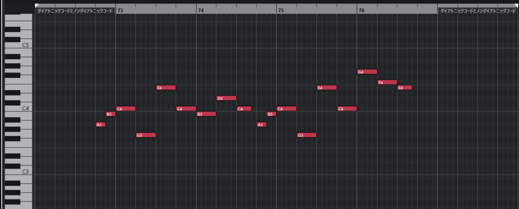 Cメジャースケールで構成されている、こちらのメロディーを使います。